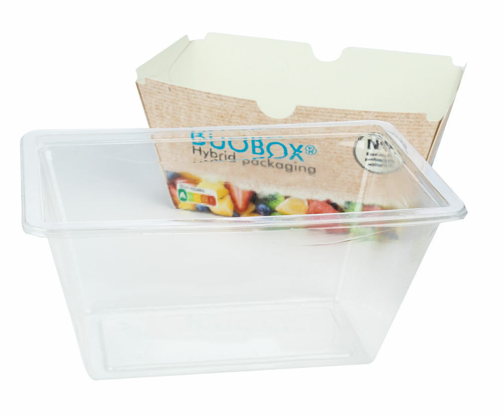 De Duobox gebruikt tot -50% minder plastic terwijl de integriteit behouden blijft dankzij het kartonnen omhulsel. Het kartonnen omhulsel is gemakkelijk te verwijderen, waardoor het gemakkelijk te gebruiken en te recycleren is. Het karton kan aan de buitenkant worden bedrukt om uw product te laten opvallen in het schap. Of aan de binnenkant om uitleg te geven over het klaarmaken van het product of het recycleren van de verpakking.