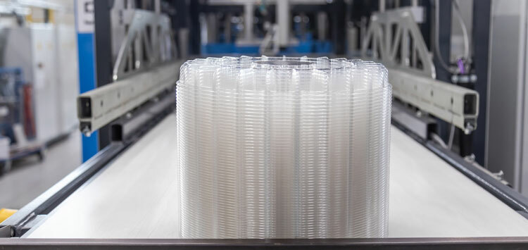 Wszystkie nasze tworzywa sztuczne zawierają 30% tworzyw sztucznych pochodzących z recyklingu. (PET zawiera 30% PCW, PP zawiera między 35% a 50% PIW). W trakcie procesu termoformowania natychmiast odzyskujemy nadwyżkę i poddajemy ją recyklingowi.